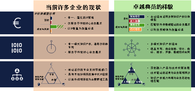 首席知识产权官(CIPO)的核心优势,在于能够直面这一现实、做好充分准备。这意味着运用完整的知识产权价值模型框架,紧跟业务发展需求;意味 着通过多模式知识产权管理,在技术、数据与品牌领域实现价值捕获与管控;更意味着推动知识产权部门迭代升级,深度融入业务,并依托技术实现全面赋能。